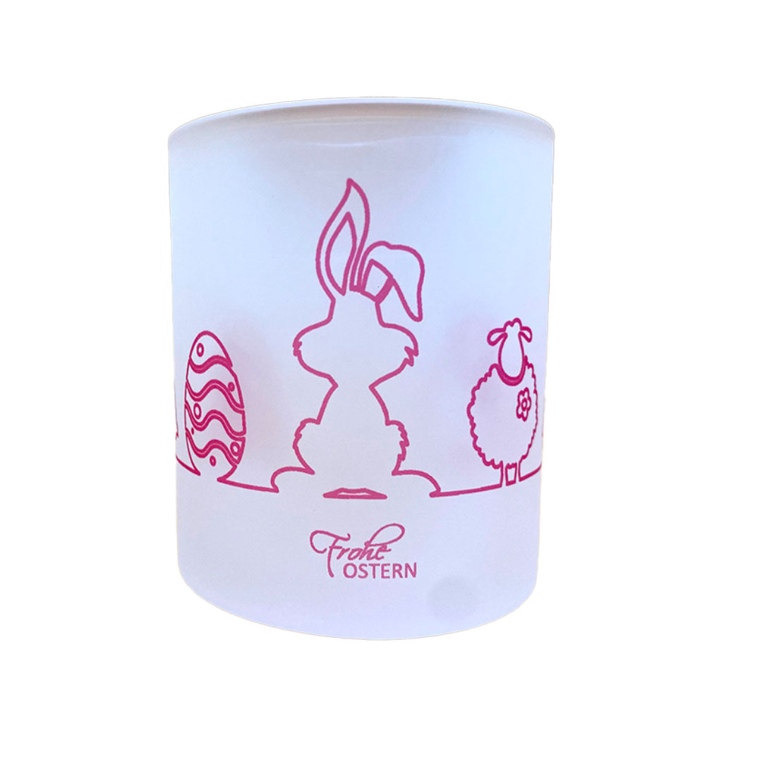 • Glastasse mit einem Fassungsvermögen von 295 ml Satiniert, ca H: 92 mm, kann mit einem UV-beständigen Druck gestaltet werden.